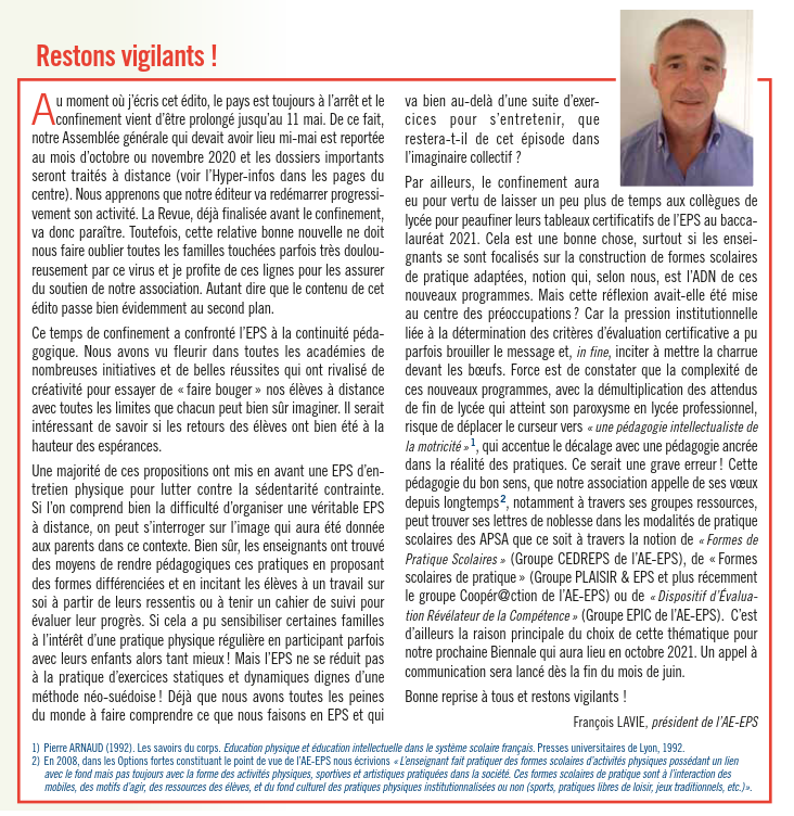 Revue "Enseigner l'EPS" - n° 281 - avril 2020